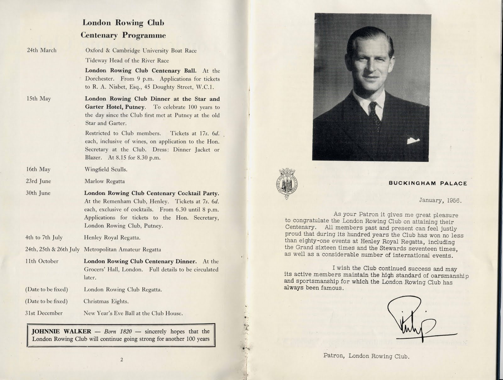 Tal como a nossa Associação Naval de Lisboa o London Rowing Club foi fundado em 1856. Encontrei acidentalmente a Brochura das Comemorações do Centenário com curiosidades:
